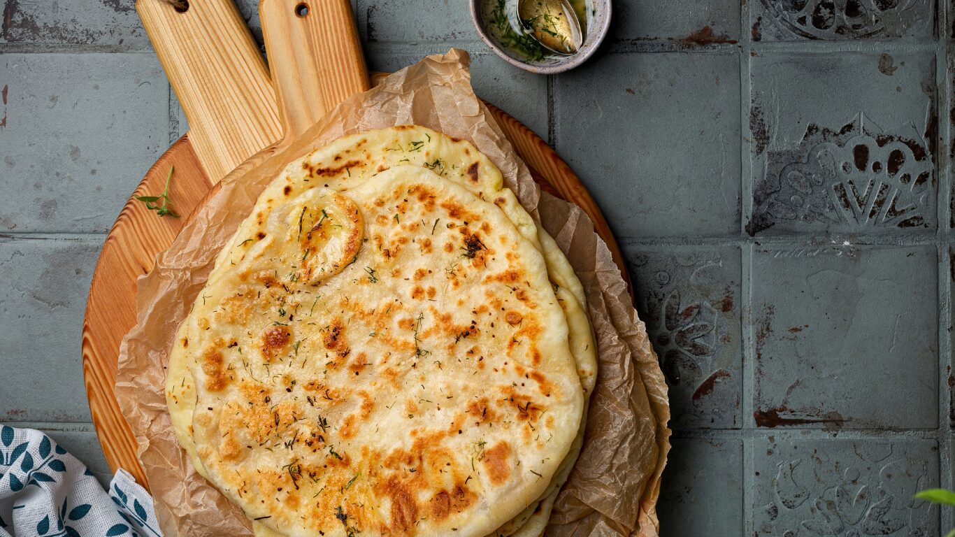 - Cheesy Knoflookbroodstokjes 1 naanbrood, pita of ander brood- of pizzadeeg